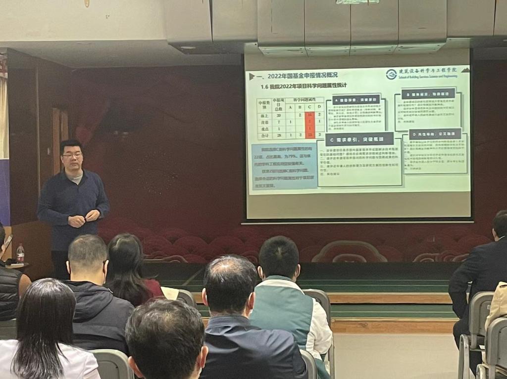 高然副院长首先对我们2022年国基金申报及获准情况进行了全面分析和总结,肯定了学院教师在科研工作方面的突出贡献,同时也指出目前学院科研工作的困难和亟待解决的问题,结合学校关于2023年国基金申报工作安排提出了我们2023年国基金申报工作安排和目标,并对2023年国基金申报的保障措施进行了简要介绍。
