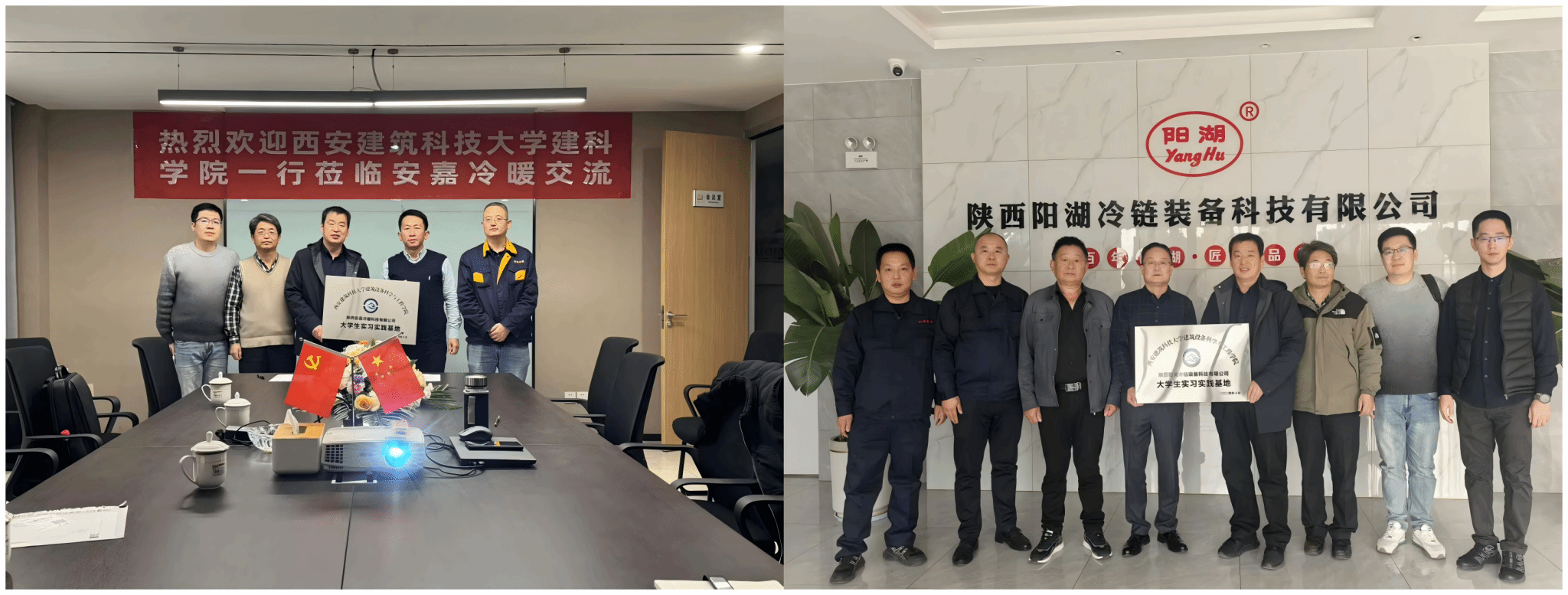 为进一步加强校企合作和实习实践基地建设,进一步提升专业实习教学质量,11月18日下午,雷竞技RAYBET副院长冯增喜、建环系副主任杨洋、教师代表党义荣、教学干事康瀚文一行四人分别赴陕西阳湖冷链装备科技有限公司、陕西安嘉冷暖科技有限公司开展实习实践基地签约和揭牌仪式。陕西阳湖冷链装备科技有限公司负责人秦峰、行政主管薛维美、陕西安嘉冷暖科技有限公司负责人安健等相关领导参加此次签约仪式和交流。