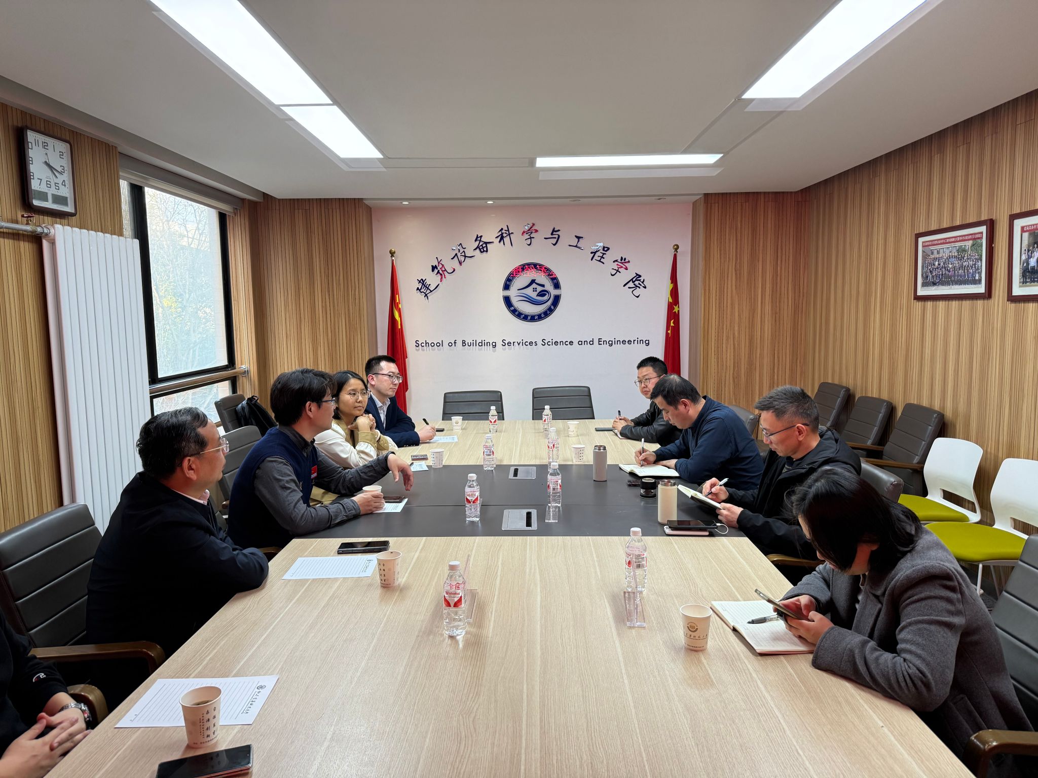 谷建军向在场人员介绍了公司的概况,阐述了在国家“双碳”战略指引下,公司的业务领域、未来发展方向的重点,以及对建环专业、智能建筑专业等领域人才的需求,期待和我校在产学研方面展开全方位的合作。徐抗力和韦彦琼则展示了公司在建筑能源与智能化领域应用的尖端技术和设备,分享了节能减碳的典型案例,并讨论了工程实施中遇到的难点。