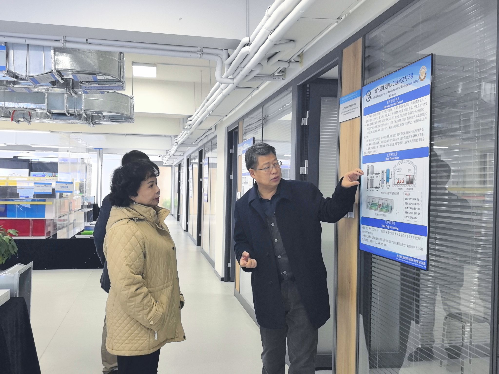 会后,朱颖心教授参观了教育部低碳建筑国际合作联合实验室,重点调研附壁通风技术、灾变环境空气安全保障等创新成果,对实验室在地下空间环境保障领域研究进展给予高度评价,并与科研团队就学科前沿问题交换意见。