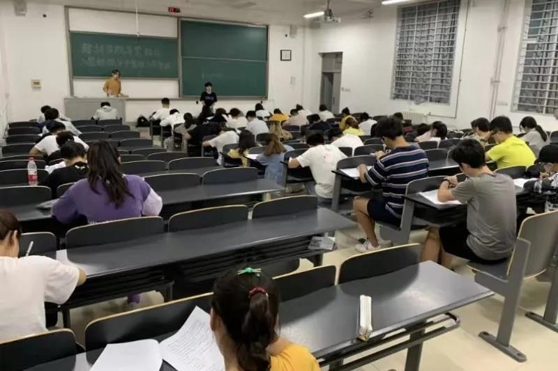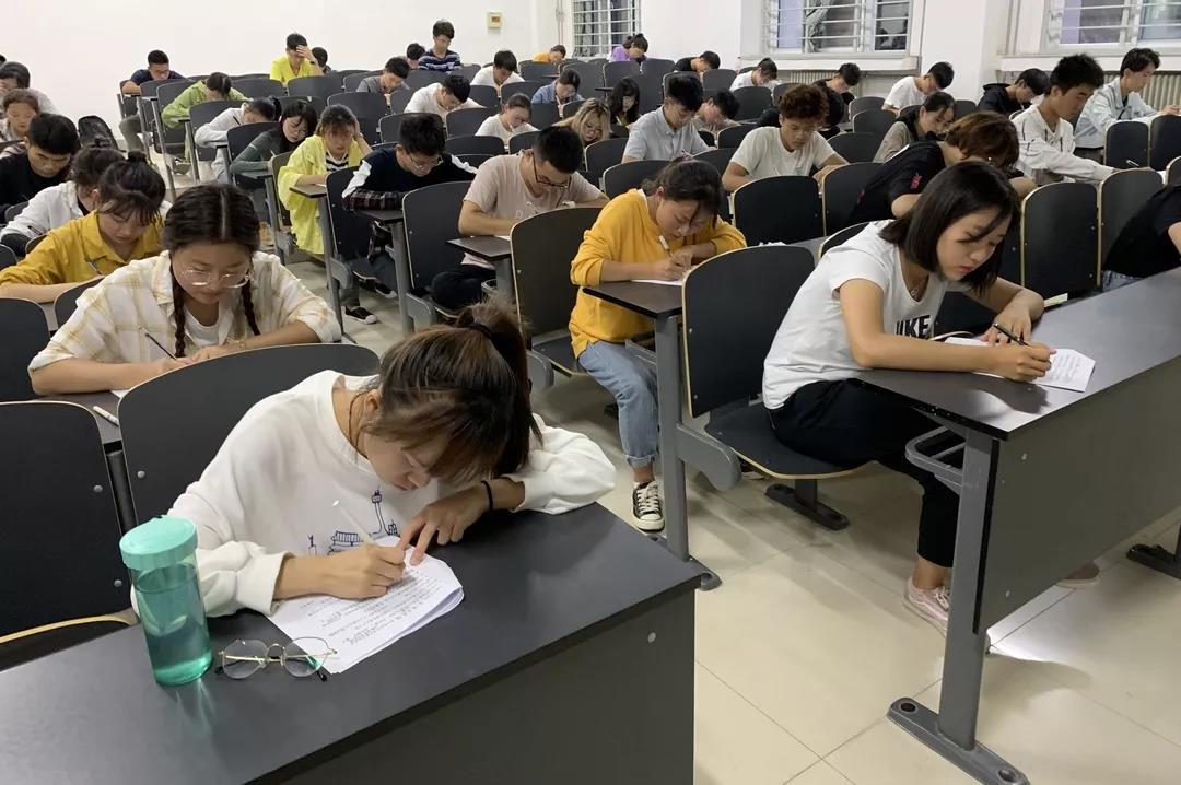 在为期一个小时的党校入学考试中,全体考生埋头答题,监考人员放轻脚步来回巡视,考场中充满了肃静与紧张。随着时间的推移,越来越多的考生交卷离场,各部分负责人坚守岗位,直至考试结束。