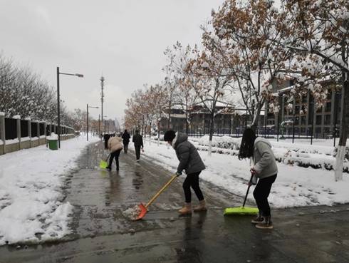 雪落草堂,在同学们为大雪纷飞的美景所欣喜激动时,与之而来的安全隐患也不容小觑。于是,为确保周边道路畅通,保障学生出行安全,做好除雪防冻工作,雷竞技RAYBET青年志愿者服务队于12月28日下午积极行动起来,开展扫雪行动,清扫世纪大道等公共场所内的积雪,美化校园,方便出行,从扫雪这件小事做起,传递正能量。