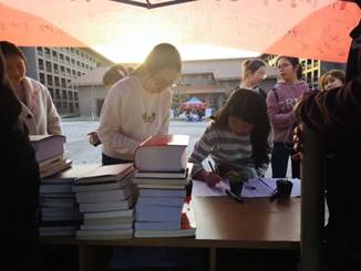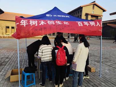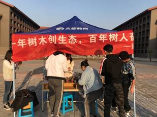 活动从中午持续到下午,往来募捐的同学络绎不绝,同学们为贫困儿童献出爱心的同时,“绿色”、“温暖”、“节约”等主题也随着活动的开展深入人心。并且,每个捐献者在“十年树木创生态,百年树人奋进时”的横幅上签上了自己的名字。这份签名不仅是一份责任,更多的是一份爱心和圭峰山下的寸寸青葱。